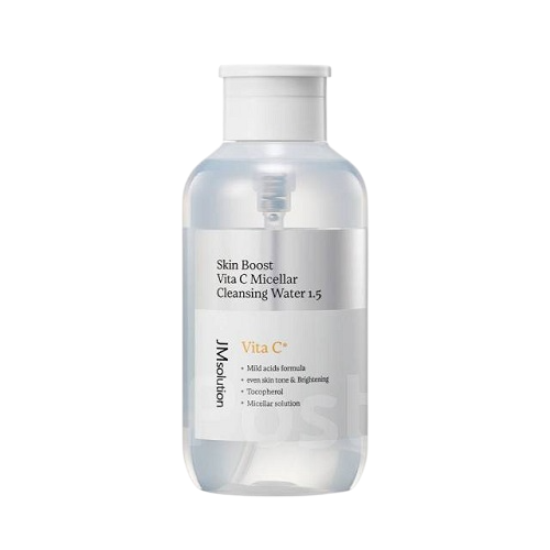 Очищающая вода JM Solution Skin Boost Vita C Micellar Cleansing Water бережно ухаживает за кожей, глубоко увлажняет и поддерживает водно-липидный баланс на оптимальном уровне. Эффективно удаляет даже водостойкий макияж, подходит для удаления с кожи лица тональных и солнцезащитных средств. Средство с pH 5 помогает поддерживать естественный уровень pH кожи, способствуя здоровью и увлажнению кожи. Облепиховая вода в составе содержит Витамины С и Е, флавоноиды и жирные кислоты, повышает устойчивость к инфекциям раздражению кожи и высыпаниям.