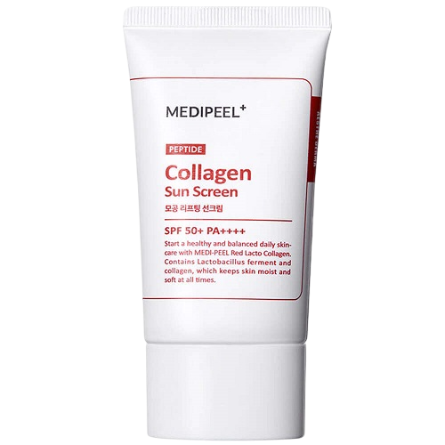 Солнцезащитный крем с коллагеном MEDIPEEL Red Lacto Collagen Pore Lifting Sunscreen SPF50+ PA++++ эффективно нейтрализует воздействие ультрафиолета, препятствует преждевременному старению. Не провоцирует появление жирного блеска и матирует. Повышает тургор кожи, разглаживает микрорельеф, уменьшает видимость пор. Препятствует появлению пигментных пятен, улучшает цвет лица и устраняет тусклость. Поддерживает оптимальный гидролипидный баланс. Средство обладает нежной кремовой текстурой, не утяжеляет кожу и не образует липкой пленки.